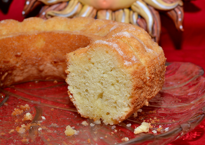 Beat 225g unsalted butter, 225g caster sugar and 10g vanilla sugar with a hand-mixer until the mixture is really creamy. Add 4-5 eggs (depending on size), one after the other whilst you continue mixing. Sift in 225g flour and a pinch of baking powder and add 100g ground almonds, the zest of one lemon & one orange and a good slug of limoncello to the mix.