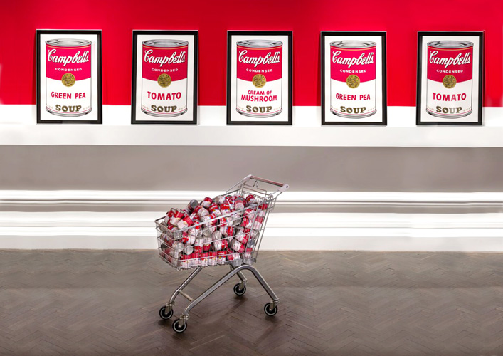 If you are hoping to see one of his most iconic works, the Campbell Soup cans, you won’t be disappointed. The display of The Campbell’s Soup I portfolio, in one of the gallery’s room, is according to Warhol’s original 1962 brief as to simulate cans stacked along supermarket shelves and an example of Warhol’s fascination with commercial culture, the mainstream and mass production. Also on show is an original Campbell’s Soup Box: Chicken Soup – commissioned after the success of the soup can paintings.
